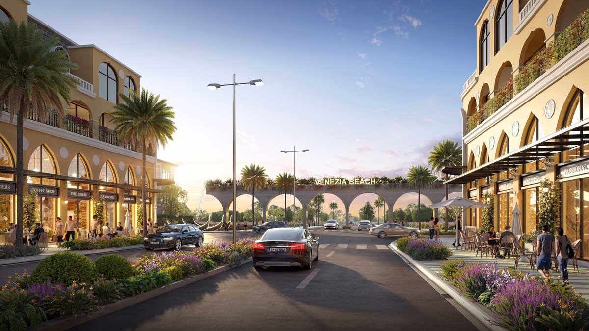 - Khu vực thương mại dịch vụ cao tầng Venezia Beach nằm ở trục chính của dự án với thiết kế xây dựng tối đa 15 tầng kết hợp với một số tầng cung cấp các dịch vụ thương mại mang đến tính thẩm mỹ cao và điểm sáng cho không gian cảnh quan khu vực.